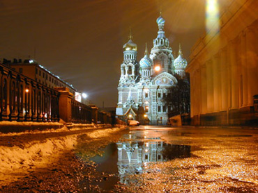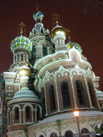 THE CHURCH OF THE RESURRECTION OF CHRIST (BLOOD)![]() ![]() Also know as "The Church of the Bleeding" or Khram "Spasa na krovi" (in Russian), this extraordinary church is built directly on the sight of Alexander II's assassination. Hence the "Church of Spilled Blood." Built on orders of Alexander III to commemorate his father's death, it was closed for several years during the world wars and was subsequently used by the Communists for storage. Just recently, the church has been re-opened, (August 1997), after having undergone intense renovations to restore it's architectural beauty. The church is visible from the Kazan Bridge on Nevskiy Prospekt.