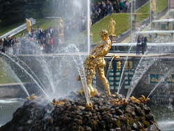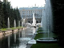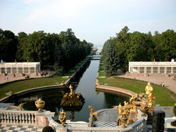 PETERHOF![]() ![]() ![]() ![]() ![]() This imperial palace, located just outside of St. Petersburg, was the first of many sumptuous keeps, for the Tsars. The name in German means literally, "Peter's Court", which is appropriate, considering the palatial estate belonged to Peter the Great. During the Nazi occupation the name was changed from it's original germanic version to a russian equivalent. Petrodvorets (pronounced "Petrodvaryets"). In 1992 the Palace officially reverted back to it's former name, Peterhof. Referred to as the "Summer Palace," these sprawling acres are peppered with exquisite gardens and a variety of dramatic fountains with sumptous gold statues. Numerous tales surround this huge palace with tours offered during the warmer months. It is accessable by car, train or hydrafoil boats. ![]() ![]() ![]() ![]()