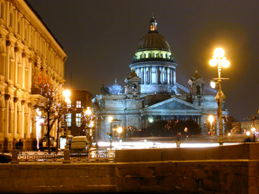 ST. ISAAC'S CATHEDRAL![]() St. Isaac's Cathedral, behemoth in size, dominates it's own square, and is one of the premier tourist attractions of St. Petersburg. St. Isaac himself, was a Monk, who shared the same birthday as Peter the Great, May 30th. This is the fourth cathedral in the city to have been dedicated to this Monk. Construction of this sight originally began in 1818, headed by a french architect by the name of Auguste de Montferrand, and was completed in 1842. Decoration took on a whole new project that commenced in 1842 following construction and continued on into 1858 at the fall of the Romanov dynasty. During the Soviet period the cathedral was turned into a Museum of Atheism. During this period there was an enormous Foucault pendulum installed in the cathedral that was supposed to be able to prove the falseness of religion through the earth's rotation. The interior is stunningly laid out in gold, precious stones, and rare works of art, all of which, have been recently restored due to the demise of the Soviet Union. The decision was made, however, not to restore the exterior, which bears the hallmark scars of the many wars this historic city has faced. Tickets are sold to view the interior and colonnade from kiosks opposite the Lobanov-Rostovskiy House. Tour hours are 11am-6pm, except Wednesday for the cathedral, and 11am-5pm except Wednesday for the colonade. Photography is not permitted for either the colonade nor the cathedral. ![]() ![]() ![]()