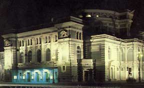 The theatre had impressively grand decoration, unusual spatial form and was the first theatre in Russia to have gas light. Exactly 10 years after its opening it was destroyed by fire, and only the stone walls were left standing. Alexander II ordered the reconstruction of the building and chose A.Kavos to work on the project. This time the theatre was to be constructed as a musical-drama theatre. By the 13th of May 1859 the aims of the project included the increasing of the width of the stage (so that would be the same as that of the Bolshoi Theatre , Moscow), and the width of the proscenium arch, which was to be made even wider than that of La Scala, Milan, the lengthening of the auditorium, the construction of another circle, the building of parallel building above the former stables, and the construction of a separate staircase and foyer for the Tsar's box. The auditorium of the Mariinsky is wonderfully impressive: the refined aristocratic range of colours composed of gilt molded decorations, white sculptures and blue velvet chairs, and the splendid thee-tiered chandelier, created by E.Frachioli according to the design of professor C.Duzi. This hall has witnessed the triumphs of many generations of Mariinsky stars. To this day, like a magnet it attracts all ballet and opera lovers - a place of perfection, skill and inspiration.